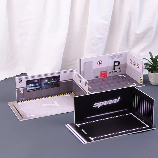 Diorama 1/64 LED Lighting Parking Lot Display Garage with Acrylic Cover Model Car Collection Display