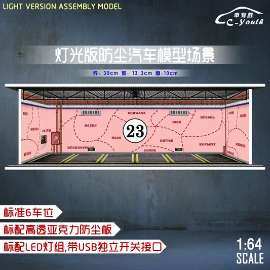 1:64 Scale Diorama Car Garage Model LED Lighting City Street View