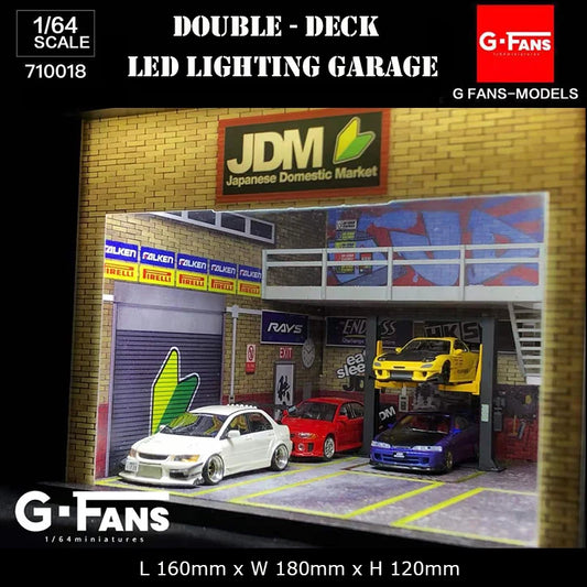 G-Fans 1:64 Assemble Diorama Double-Desk USB LED Lighting Model Car Garage -JDM Version
