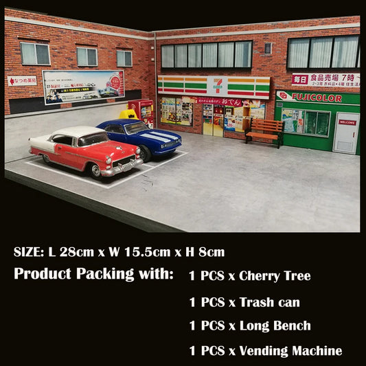Diorama 1:64 Model Car Parking Lot Station Scenery Vehicle Garage Display Gifts