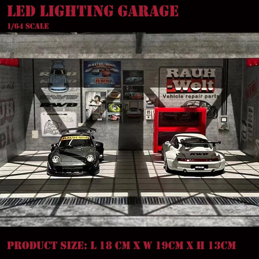 Assemble Diorama 1/64 LED Lighting Garage RWB Coating fix for Vehicle Display Station