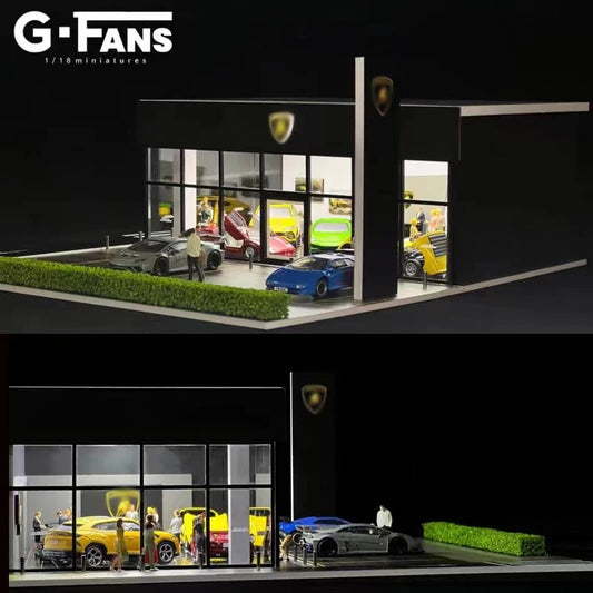 G-FANS Assemble Diorama 1:64 USB LED Lighting Model Car Parking Lot -Lambro Exhibition Hall