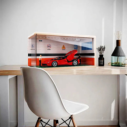 1:24 Diorama 1/18 Garage Scene Parking Lots with Light Model Car Solid Wood Dust Cover