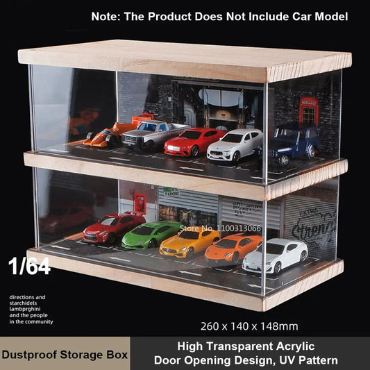 1/64 Diecast Model Car ABS Display Box Acrylic Transparent Parking Lot Diorama