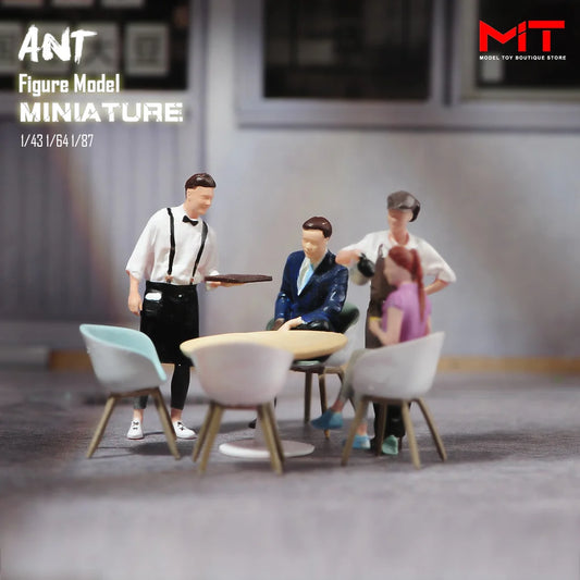 Miniature Figurines 1/87 1/64 1/43 1/24 Restaurant Waiter Diners Smoking Man Model Scene Figure